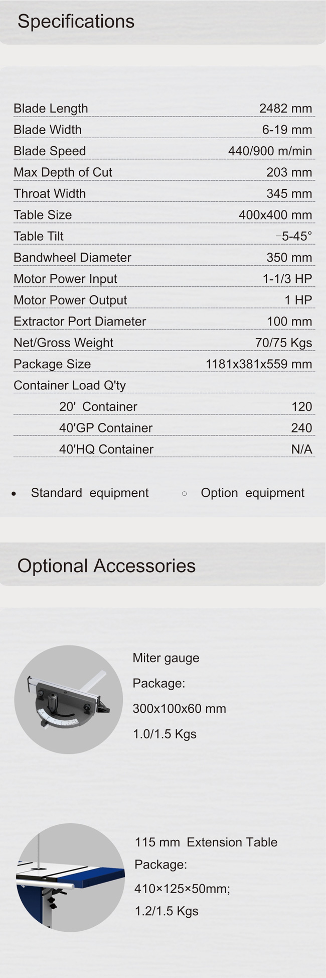 * Image shown with optional Extension Table.